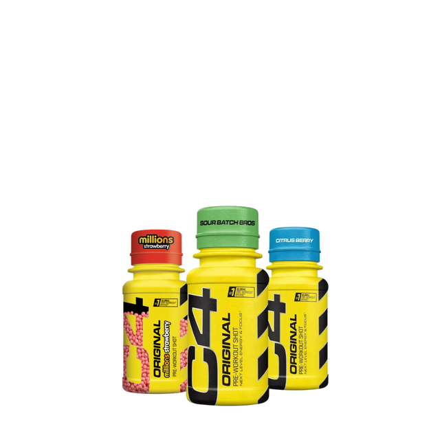 Der C4 Energy Shot in der handlichen 60-ml-Flasche ist dein ultimativer Pre-Workout-Kick. Mit CarnoSyn® Beta-Alanin und L-Arginin unterstützt er ein intensiveres und längeres Training, während Koffein für den nötigen Energieschub sorgt. Genau der richtige Boost, bevor es losgeht!