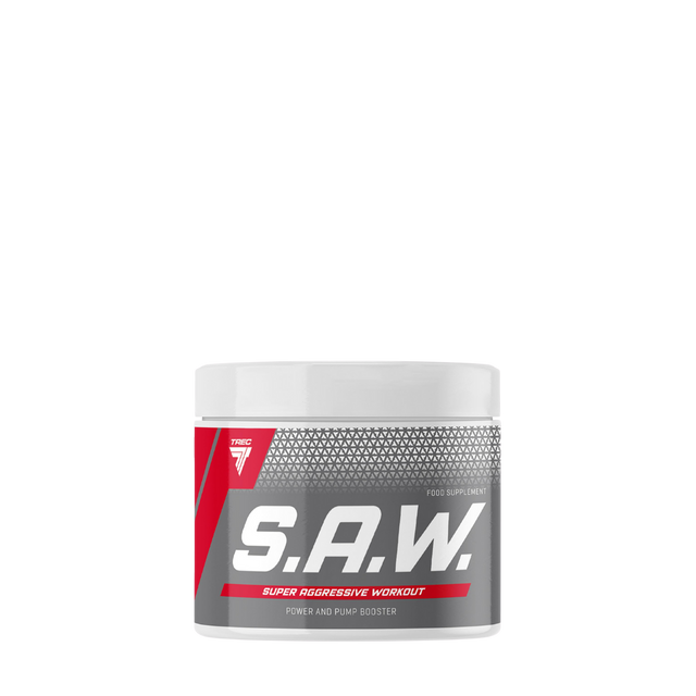 SAW Super Anabolic Booster von Trec Nutrition ist ein ultrakonzentriertes Pre-Workout Booster für Profis. SAW unterstützt den Aufbau der Muskelkraft sowie Masse und verbessert die Leistungsfähigkeit bei schwerer körperlicher Anstrengung. SAW weist eine starke anabolische Wirkung auf und erhöht drastisch das Volumen der arbeitenden Muskeln im Gym. Dabei sichert es die zusätzliche Sauerstoff- und Nährstoffversorgung der Muskeln und verleiht einen Wachstumsimpuls.
