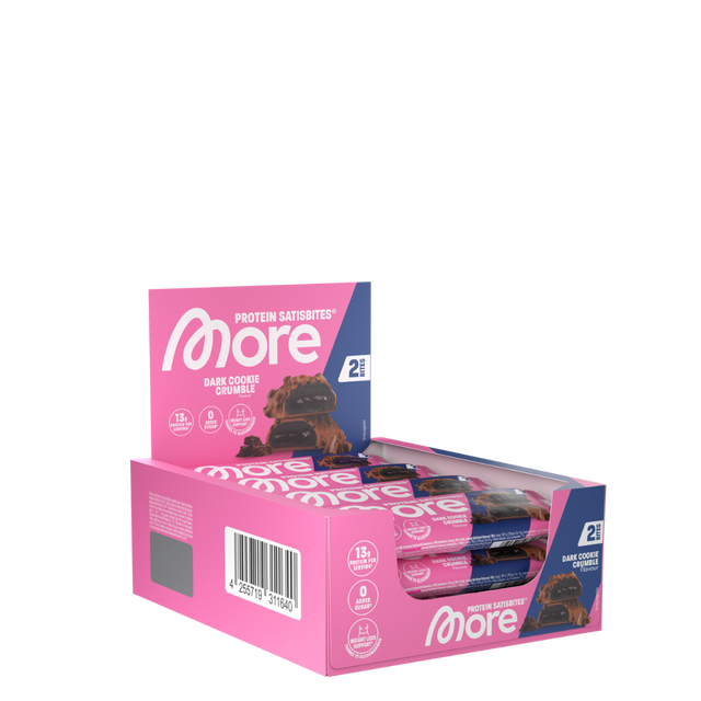 More, Protein Satisbites, 12 x 50g - Dark Cookie Crumble ist auf Lager und wird versandt, sobald es wieder verfügbar ist